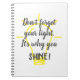 Don't forget your light. It's why you SHINE! Spread your positivity to a new writer or student. This notebook is very uplifting, cheerful, and positive guaranteed to put a smile on someone's face.
