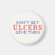 Don't get ulcers, give them! Fun advice stitched in retro cross stitch embroidery needlework on white Aida cloth background.