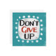 "Don't Give Up" is a cute inspirational or motivational quote with a white accent shape surrounded by white textured whimsical dots.