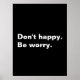 Don't happy. Be worry. funny saying sarcastic text Poster
