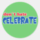 Don't Hate -- Celebrate! Tshirts, Mugs, Buttons Classic Round Sticker