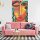 My colourful abstract acrylic painting of a woman on OSB board is printed on wrapped canvas