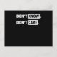 Dont Know Dont Care Funny Sarcastic Joke Gift Postcard