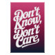 Typographic design saying : Don't know, don't care.