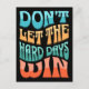 Colourful, groovy, wavy retro style "Don't let the hard days win" motivational text design with blue, orange, turquiose and pink colours for everybody who likes inspirational quotes. It is easy to change the background colour and personalise it.