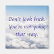 This product displays a photograph of a blue sky with clouds. On top of the photograph is the text, "Don't look back. You're not going that way."
