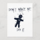 NewParkLane - Funny black and white postcard, with funny, sarcastic quote 'Don't make me do it' in a spooky Halloween gothic typography, with a silhouette illustration of a scary voodoo doll.