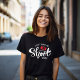 Kiwis wear all black as the t shirt is with Green lettering to match the environment and yellow for joy and purple thistle to match my hair.