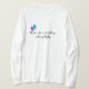 I love this shirt. I had written to the artist asking her if this picture was available on a shirt, and she wrote me back telling me where I could find the shirt. These shirts can be custom made to have a different saying. I loved this saying and went with it. The artist wrote me back later to tell me that she had seen my order go through. How's that for service? Pretty special. It's just as displayed. Perfect!