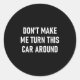 Don't Make Me Turn This Car Around, Funny, Jokes, Classic Round Sticker