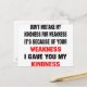 Don't Mistake My Kindness For Weakness. It's Because Of Your Weakness I Gave You My Kindness