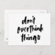 "Don't overthink things." Sometimes we just need a little quote to remind ourselves. With the beautifully hand lettered calligraphy makes this a special and memorable gift for our loved ones.