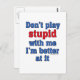 Don't play stupid with me, I'm better at it - Funny one liner. See this silly saying on products and apparels.