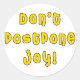 Don't postpone joy! Remind yourself and everyone around you that life is short and is meant to be lived fully and with joy! In joyous yellow print, the hottest colour of the season. Available in dozens of t-shirt styles, colours and sizes, as well as on mugs, buttons, keychains and other merchandise at greenbaby!