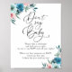 Don't Say Baby Game Sign featuring watercolor blue and pink florals and greenery match our Pink and Blue Florals Collection found in the Adore Paper Co. Zazzle shop.