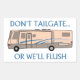Motorhome with "Don't tailgate...or we'll flush"