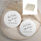 This “Don’t take my drink! I’m dancing” rubber stamp adds a playful and practical touch to your wedding reception. Designed in a modern minimalist handwriting script with a hand-drawn heart, it’s perfect for stamping the back of your coasters (to make a double sided wedding coaster) so guests can cover their glasses while they’re out on the dance floor. A simple, stylish detail that keeps the celebration flowing and drinks right where they belong.