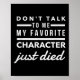 Don't Talk To Me My Favorite Character Just Died H Poster