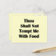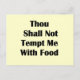 If you've ever been trying to watch your weight, not eat all the rich, sweet, gooey desserts, yet there always seems to be someone who offers you just the thing you wish you could have but are trying to stay away from, you'll relate to this funny diet and fitness design! Text reads "Thou Shall Not Tempt Me With Food" on T-shirts, mugs, tote bags, water bottles, hoodies, cards, stickers, magnets, key chains, and other items.