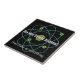 Fun tile design with simple atom graphic and funny "Don't trust" joke quote on black background