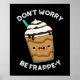 Don't Worry Be Frappey Frappuccino Pun Dark BG Poster