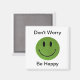 Don't Worry, Be Happy magnet. This green happy face with a white background is sure to cheer up anyone! Personalise it by changing the text and the background colour! Make sure to check out my other products at zazzle.com/lsarmentoart*