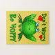 Dont Worry Be Hoppy Cute Green Frog w Hearts Jigsaw Puzzle