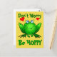 Dont Worry Be Hoppy Cute Green Frog w Hearts Postcard