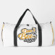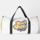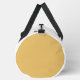 This cheerful white and yellow duffle bag features an adorable bee and the uplifting message "Don't Worry Bee Happy" in playful yellow and orange script. It's a fun and positive accessory to brighten anyone's day, whether they're off to the gym, travelling, or just need a smile. This bag embodies a lighthearted and optimistic spirit. Edit colour of the bag caps and body in the Design tool to your favored colours.