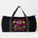 This vibrant black pink and yellow duffle bag features the uplifting message "DON'T WORRY BEE HAPPY SMILE" with cheerful bees and colourful accents. It’s a delightful accessory designed to spread positivity and brighten any day. Perfect for gym trips, travel, or as a thoughtful gift for someone who needs a reminder to stay optimistic. Edit colour of the bag caps and body in the Design tool to your favored colours.