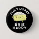 Don't Worry Brie Happy Funny Cheese Pun Dark BG 6 Cm Round Badge