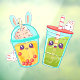 Donut Shop Bubble And Matcha Tea Bunny Cartoon