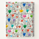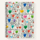 This notebook cover is bursting with adorable doodles! Imagine opening your notebook and seeing all these cute little friends, each with their own funny faces and surrounded by colourful hearts.