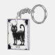 Elevate your space with this artistic keychain featuring a bold, grungy black cat illustration. The cat is drawn with rough, sketchy lines and surrounded by black ink splatters, creating a dynamic, edgy aesthetic. The distressed texture and doodle style give the tile a raw, modern appeal.