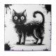 Elevate your space with this artistic ceramic tile featuring a bold, grungy black cat illustration. The cat is drawn with rough, sketchy lines and surrounded by black ink splatters, creating a dynamic, edgy aesthetic. The distressed texture and doodle style give the tile a raw, modern appeal.