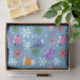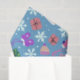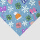 Light blue background with Christmas doodles pattern. Cute mittens, hats, and gifts with white snowflakes. Stuff your gift bags with cute Christmas tissue paper people can save for crafting.