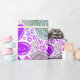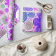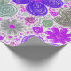 Vibrant flowers in shades of purple, pink, blue, and green are arranged in a whimsical swirling pattern
