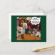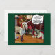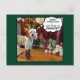 A humourous Christmas postcard showing a goldendoodle wearing Christmas socks and asking about his eggnog.