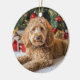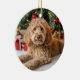 This adorable Christmas ornament, featuring a Goldendoodle lying under a Christmas tree, is a wonderful gift for any Doodle lover.