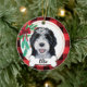 Doodle ornament with red buffalo background and Christmas garland and bow - Art was hand painted by me and made available as this adorable ornament! Add any text (suggested: "I ❤️ my doodle" or your sweeties name)