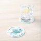 Beach cottage theme pulp board paper coasters, with graphics of a aqua blue doodle style fish, on a white background. Personalise the aqua blue arched text to suit your needs. Great for anytime use and makes a nice gift idea.