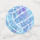 This cute volleyball themed confetti has a blue colour theme with turquoise and purple accents and features the outline image of a simple volleyball and a doodle pattern of paislies, flowers and feathers in white - personalise with her celebration details - by katz_d_zynes
