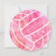 This cute volleyball themed round party invitation has a pink colour theme with pastel and bright pink accents and features the outline image of a simple volleyball - a delicate doodle pattern of paislies, flowers and feathers in white covers all but one of the volleyball's textured-look panels - personalise with her celebration details - by katz_d_zynes