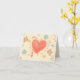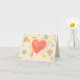 This Mother's Day folded card has a soft cream and white polka dots background with a red doodle heart in the middle. All around in the background are flowers with two birds flying on each side. The inside is has Mum written in a pretty cursive font with an easily customisable saying below.