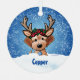 Doodle Puppy Reindeer Christmas Metal Ornament