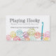 Simple doodle or scribble style colourful balls of yarn with crochet hook on this business card for your handmade crocheted yarn crafts