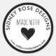Made with love stickers for your handmade or handcrafted goods in white with a black border. In the middle, a doodled black heart. Add your business name and website in modern fonts.