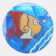 Hand painted DooDles fish on an ocean blue background. DooDles details are painted in gold red and opaline green accents.