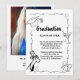 Hand drawn graduation announcement states "graduate" in delicate, white elegant modern font and has your favourite personal photo on the front of the card. The back can contain additional information about the graduate, which will be presented in a minimalist black and white design.