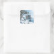 Pretty Christmas stickers with an illustration of Door County in the winter. The pretty dune ledges covered in icicles and frozen blue ice, blue water of Lake Michigan hitting against the bluffs, Sun shining lighting up the sparkling snow and ice. Christmas lights in the trees.